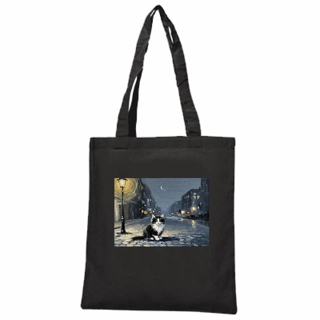 まるで美術館の作品のように仕上げた、絵画風の猫アートをプリントした特別なトートバッグ。